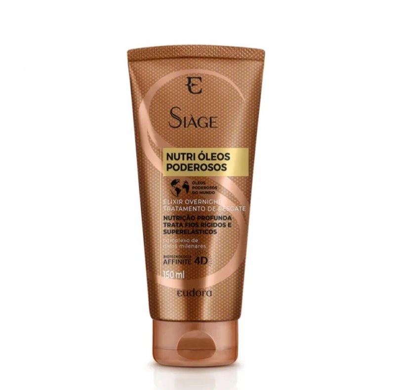 O Elixir Capilar Tratamento Overnight da linha Siàge Nutri Óleos Poderosos proporciona hidratação noturna intensa e cabelos prontos ao acordar.