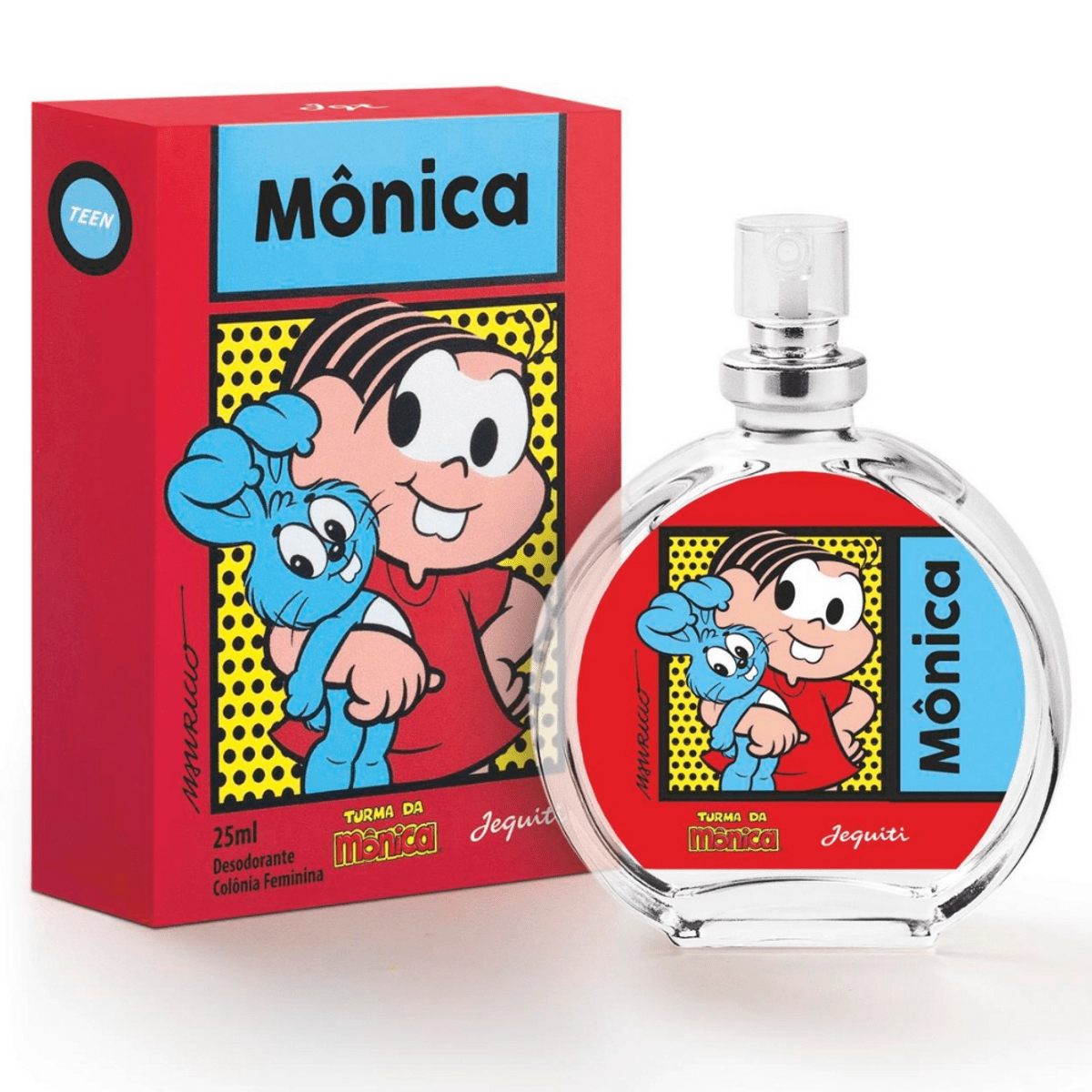 A icônica personagem Mônica, que teve o começo de sua jornada de brincadeiras nas histórias em quadrinhos, agora possui uma colônia que estampa a personagem, trazendo uma fragrância alegre, onde na saída há uma explosão de notas frutadas com o morango e framboesa, no corpo temos a floralidade que entra delicadamente junto as notas de fundo de algodão doce, baunilha, âmbar e musk, tornando essa fragrância tão especial quanto a personagem.