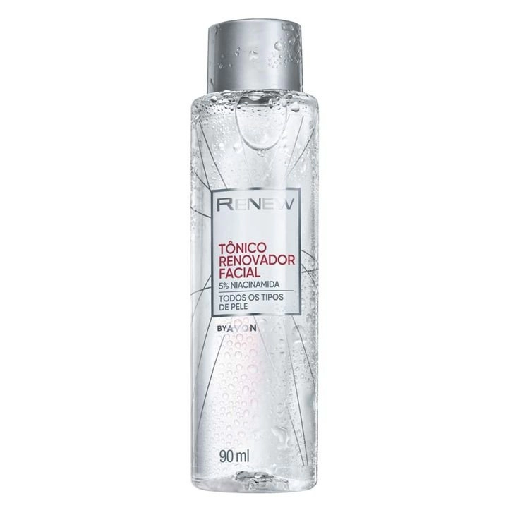 Renew Tônico Renovador Facial é formulado com uma combinação exclusiva de ingredientes que garante um ótimo tratamento cosmético e limpeza da pele. Formulado com 5% de Niacinamida, promove uma visível melhora dos poros, da textura da pele e da uniformização do tom. Além de ajudar a hidratar imediatamente e a renovar a pele, o tônico uniformiza o tom de pele e promove uma melhoria visível na textura da pele e poros. Formulado para ajudar a prevenir danos que podem tornar a pele mais vulnerável aos sinais de envelhecimento* e para revitalizar a pele com aparência cansada. *Com base em testes em células cutâneas/da pele.