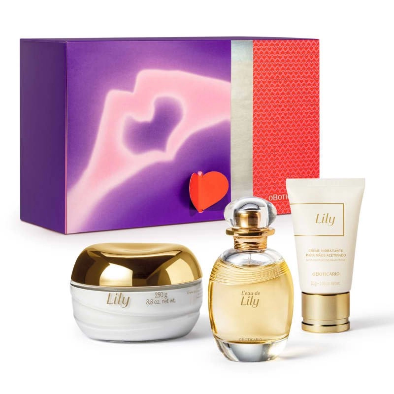 O Kit Presente Dia dos Namorados Lily traz a linha inspirada na mulher que pode ser tão empoderada quanto sensível. Um presente para namorada que celebra o dia do amor com itens que traz a fragrância floral encantadora de Lily para o dia a dia, hidratação intensa para mãos e corpo e perfumação marcante:
