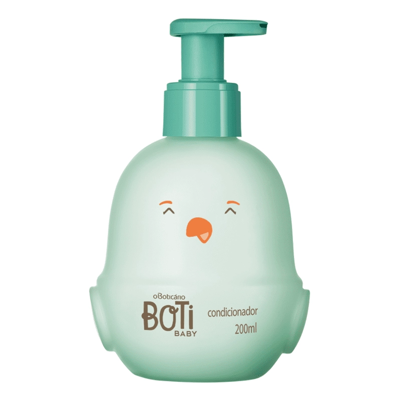 Na espuma cheirosinha passarinho vai brincar. É um banho de carinho para tudo alegrar. Seja dia, seja noite, banho é sempre diversão. Fica tudo bem limpinho e acalma o coração. Um cheirinho gostoso que dá até vontade de fazer festinha na banheira. Assim é o Boti Baby Condicionador. Deixa o delicado cabelo do bebê macio e brilhante. Glicerinado e com extrato de algodão e erva-doce, o condicionador é à prova de lágrimas e livre de corantes, parabenos e álcool. Sua embalagem pump ainda oferece ótima usabilidade na hora do banho.